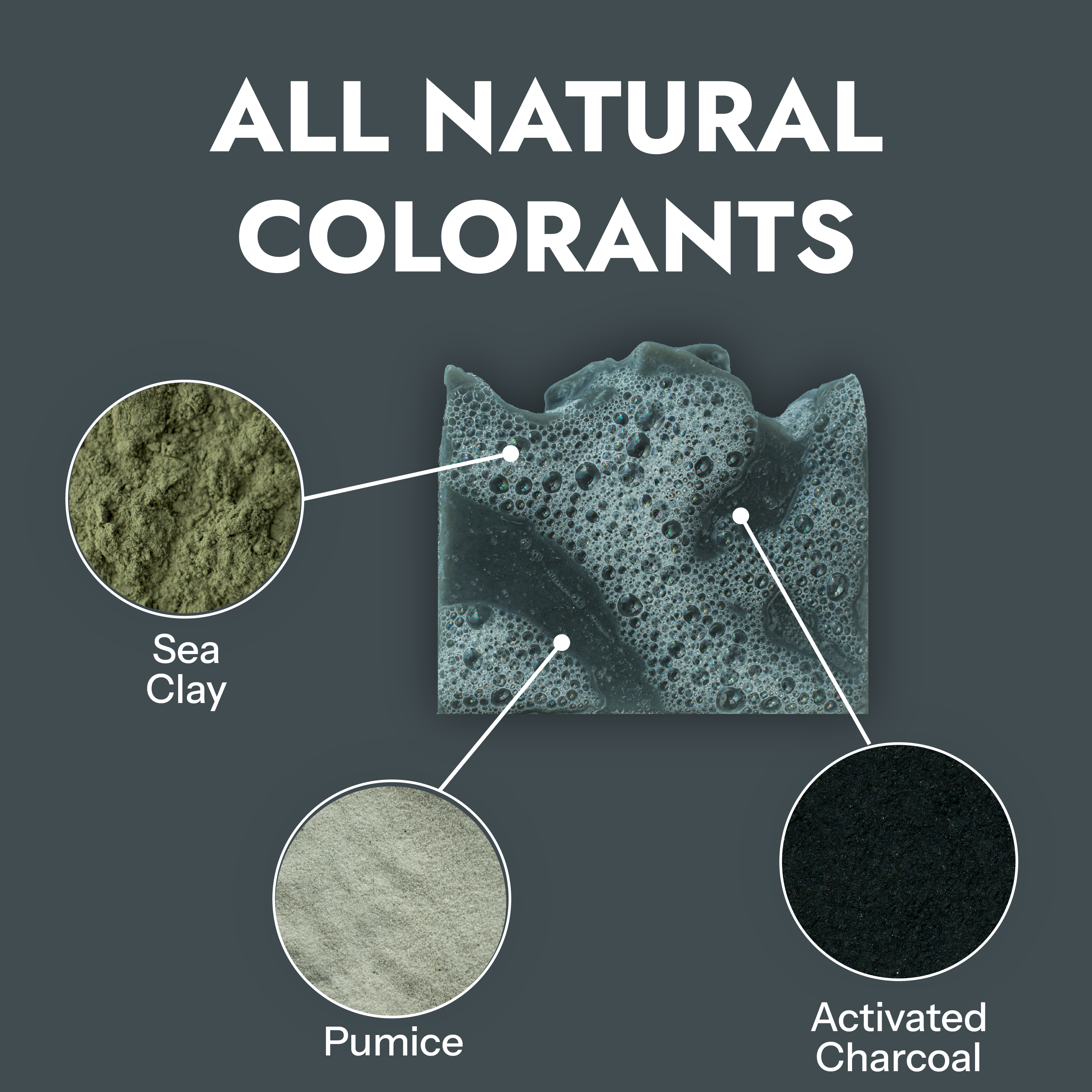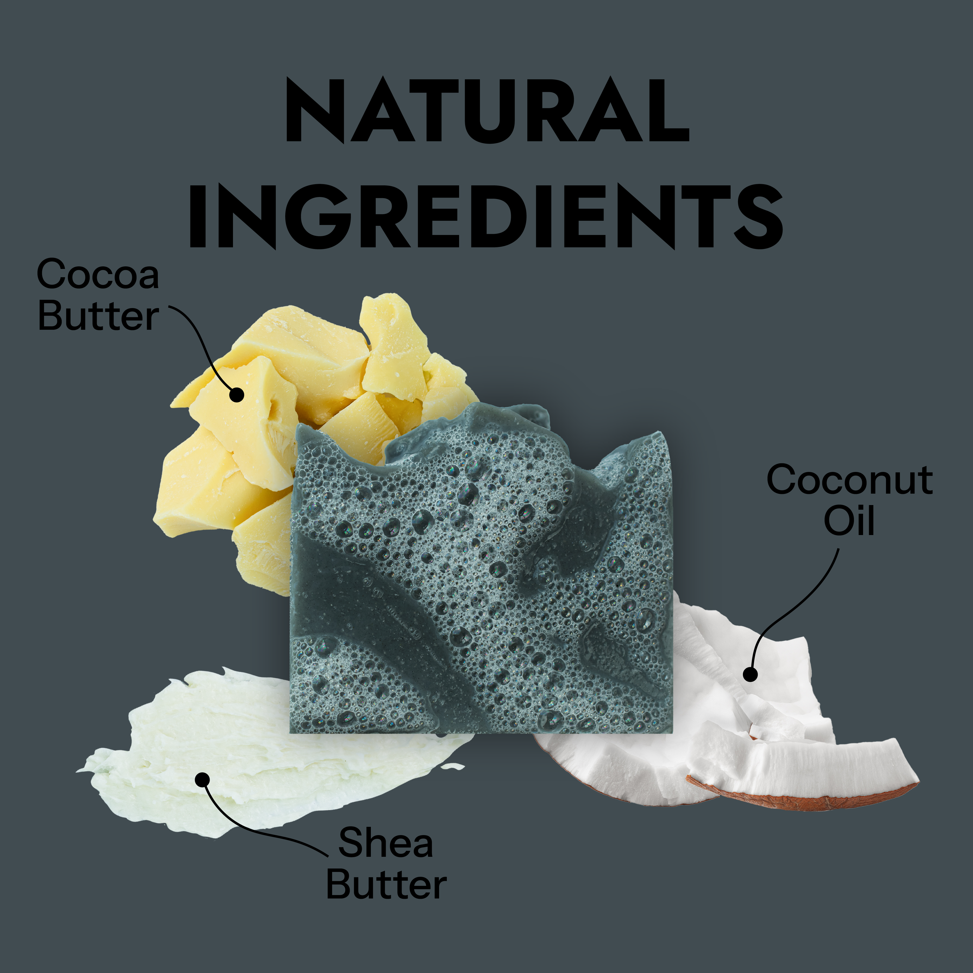 Olive Oil, Coconut Oil, Water, Lye, Shea Butter, Cocoa Butter, Castor Oil, Fragrance, Pumice, Sea Clay, Activated Charcoal. Black Sand Beach Bar Soap